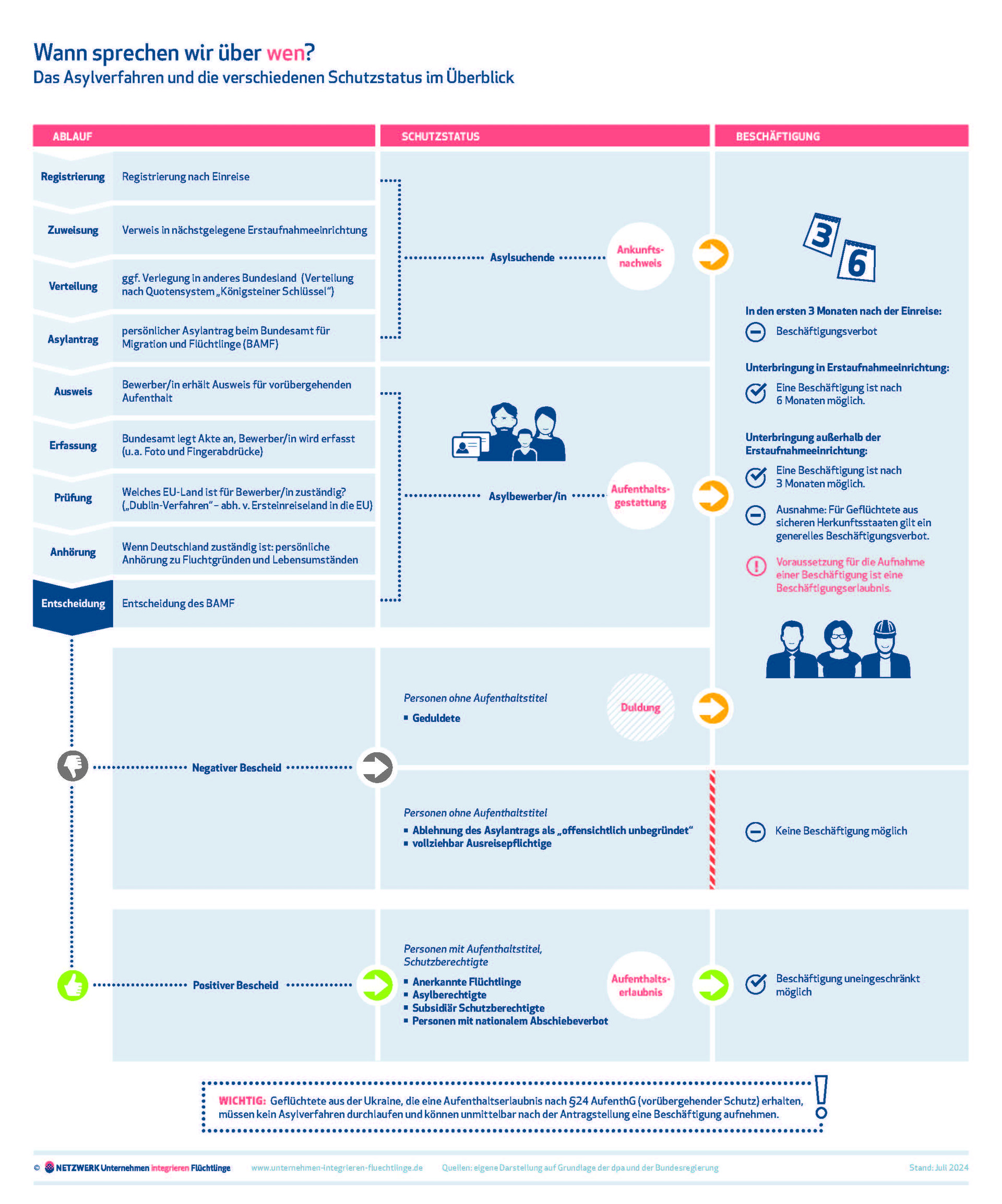 Das Netzwerk unterstützt Betriebe aller Größen, Branchen und Regionen, die geflüchtete Menschen beschäftigen oder sich ehrenamtlich engagieren wollen. Hier erhalten Sie Informationen und tauschen Erfahrungen aus.